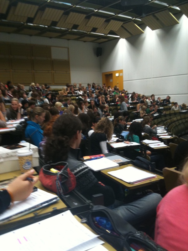 Da, asa este! Astazi universitatile si-au redeschis usile si studentii au navalit la primele cursuri. Nu exagerez când spun au NAVALIT! Fetele mele m-au sunat sa-mi spuna ca a fost un curs "Teoria scolii"(Theorie der Schule / profesor Werner Wiater), la care sunt înscrisi paralel studenti din semestrul I, II si III si în aula cu 350 locuri au fost ~700 persoane! O mare de studenti a inundat sala! Raluca s-a dus la curs cu 15 minute înainte de începere, în ideea de a ocupa un loc bun... când colo, a fost fericita sa mai gaseasca ultimile locuri pe scaun! Urmatorii colegi, s-au asezat pe scari, între rândurile amfitetrului. Este clar o anomalie, cu care se confrunta ministerul învatamântului! Practic, înca de anul trecut, numarul studentilor s-a triplat, datorita faptului ca a s-a redus învatamântul Gymnasial de 13 la 12 ani (a nu se comfunda cu gimnaziul din România! Gymnasium - german, este o trepta mai înalta ca un liceul teoretic sau colegiul. Spre exemplu, unui absolvent de liceu din România care doreste sa se angajeze în Germania, nu-i va fi recunoscuta diploma, decât daca a facut macar un semestru de facultate. Altfel, diploma de bacalaureat româneasca este echivalenta cu diploma de Realschule - Mittlere Reife, adica 10 clase) si pentru faptul ca anul acesta este al doilea an de când serviciul militar nu mai este obligatoriu... si nu se mai înscrie nimeni voluntar (:)) nici nu ma întreb de ce!).