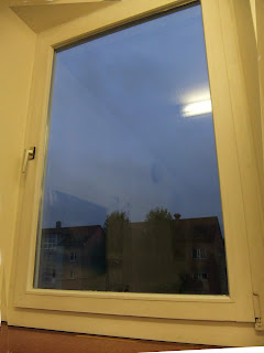 Fotografiile le-am facut astazi, la mine la serviciu. Este fereastra din dreptul biroului meu. Prima fotografie am facut-o la ora 6:45, a doua la 7:45 si ultima la 8:45 :) În fiecare fotografie se vede si neonul aprins. In biroul nostru nu se stinge lumina decât daca afara straluceste soarele... pe timpul acestui anotimp însa, foarte foarte rar!