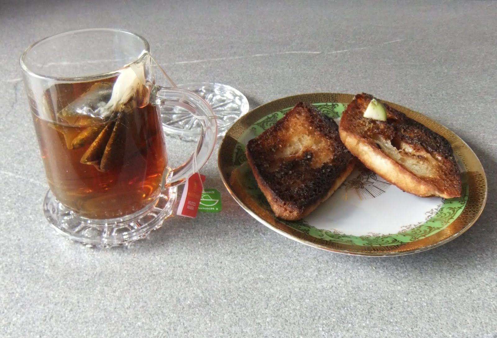 Queen, mâncam pâine prajita în ulei si beam ceai de menta si macese, cu multa multa lamâie. Atunci habar nu aveam de acizi alfa-linolenici, colesterol, grăsimi oxidate sau interactiuni alelopatice şi nici nu ne pasa de calorii-bombe, minerale sau proteine. Atunci doar savuram aroma în care se învaluia bucataria, când aburului de menta, macese si lamânie, se combina cu mirosul de prajeala si... usturoi. Pentru ca ar fi fost de neconceput sa mâncam pâine prajita fara sa o raschetam cu usturoi :)) Ce vremuri faine!
