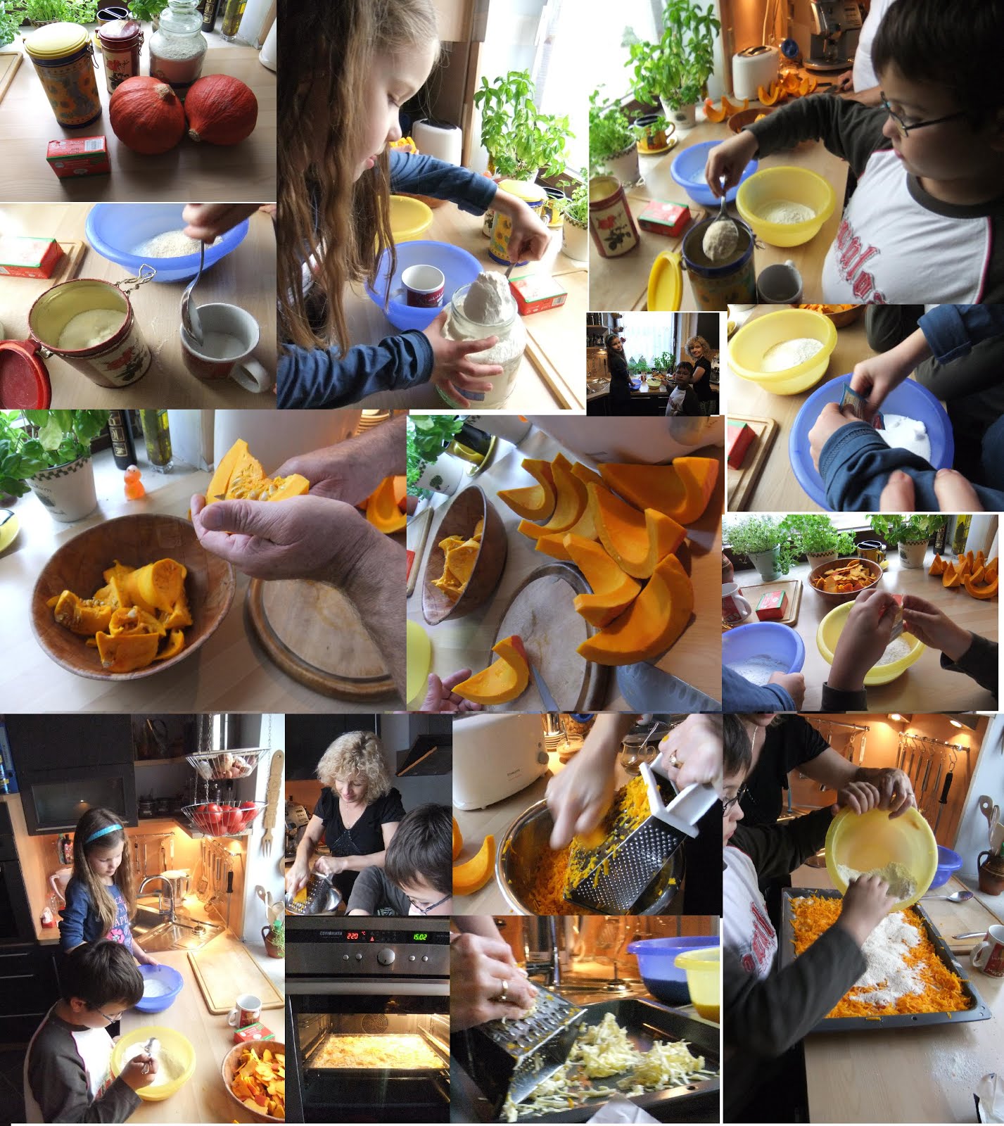 - se presara dovleac razuit (doi dovlecei, caruia în prealabil le-am curatat coaja si sâmburii)