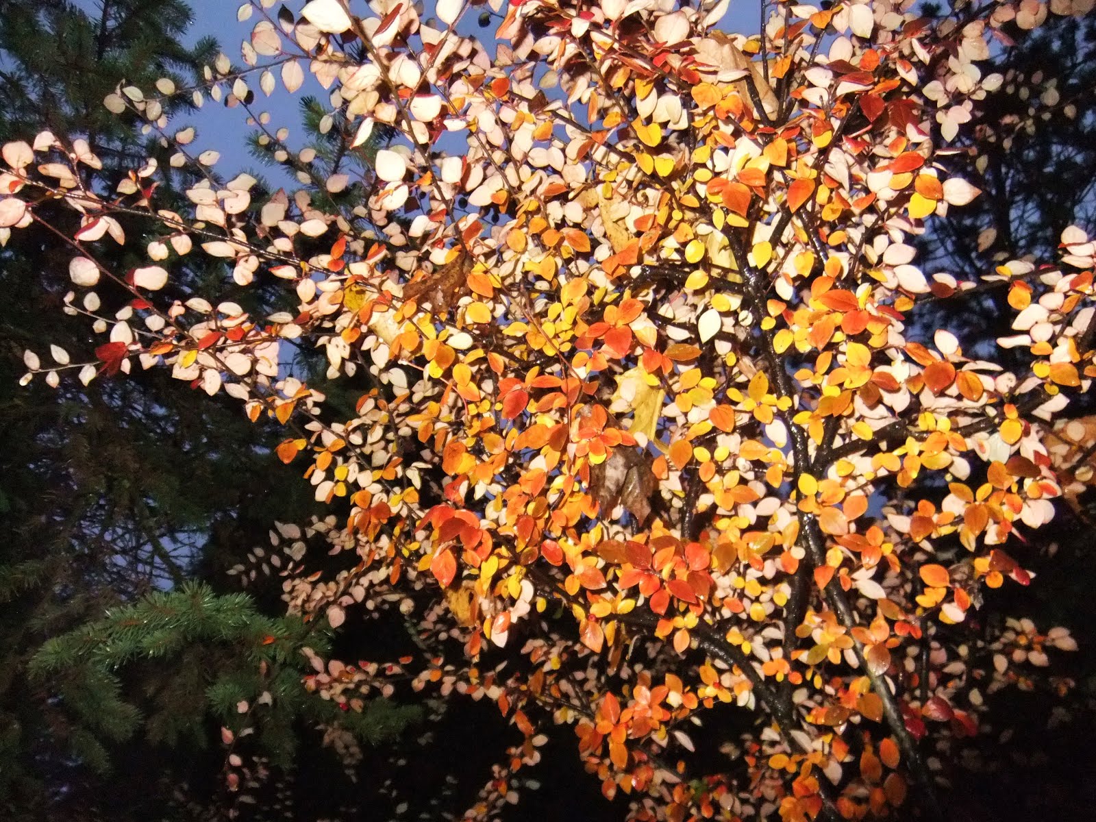 33. Frunzele din primul copac mi-au părut niște fructe mici și roșii! Atrăgătoare ca ele. Noaptea ta de noiembrie e foarte colorată, iar copacii încă păstrează cromatica aceea caldă și nostalgică a toamnei, înainte să se încarce de omăt. Frumoase fotografii! Să ai o zi minunată! Îmbrățișări! :)