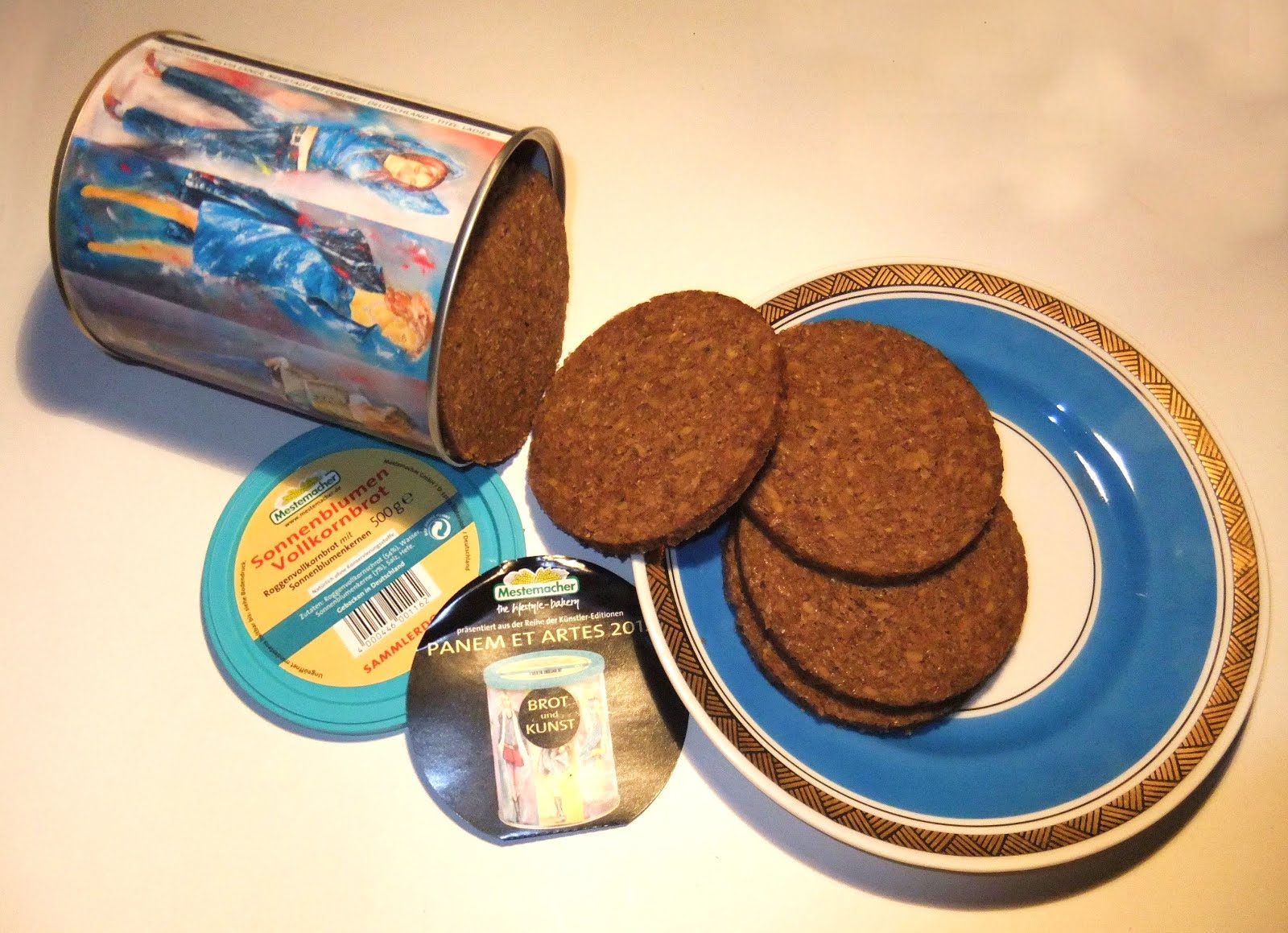 "Brot und Kunst" adica "Pâine si Arta" este un sort de pâine completa din secara, în aluatul careia s-au adaugat seminte întregi de floarea soarelui, ambalata într-o doza deosebita, de colectie, ce promoveaza "mai altfel" operele artistilor. Pâinea aceasta este considerata foarte sanatoasa si în plus, doza o mentine proaspata un an de zile (de la desigilare), de aceea este si foarte scumpa. Este o pâine densa, trebuie mestecata lent, satura repede si ajuta la digestie. Eu am cumparat o astfel de pâine saptamâna acesta, special pentru tema "Parfumul pâinii" :)