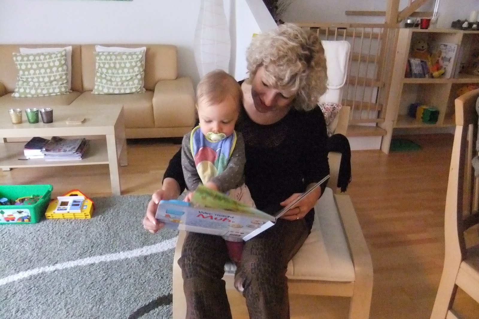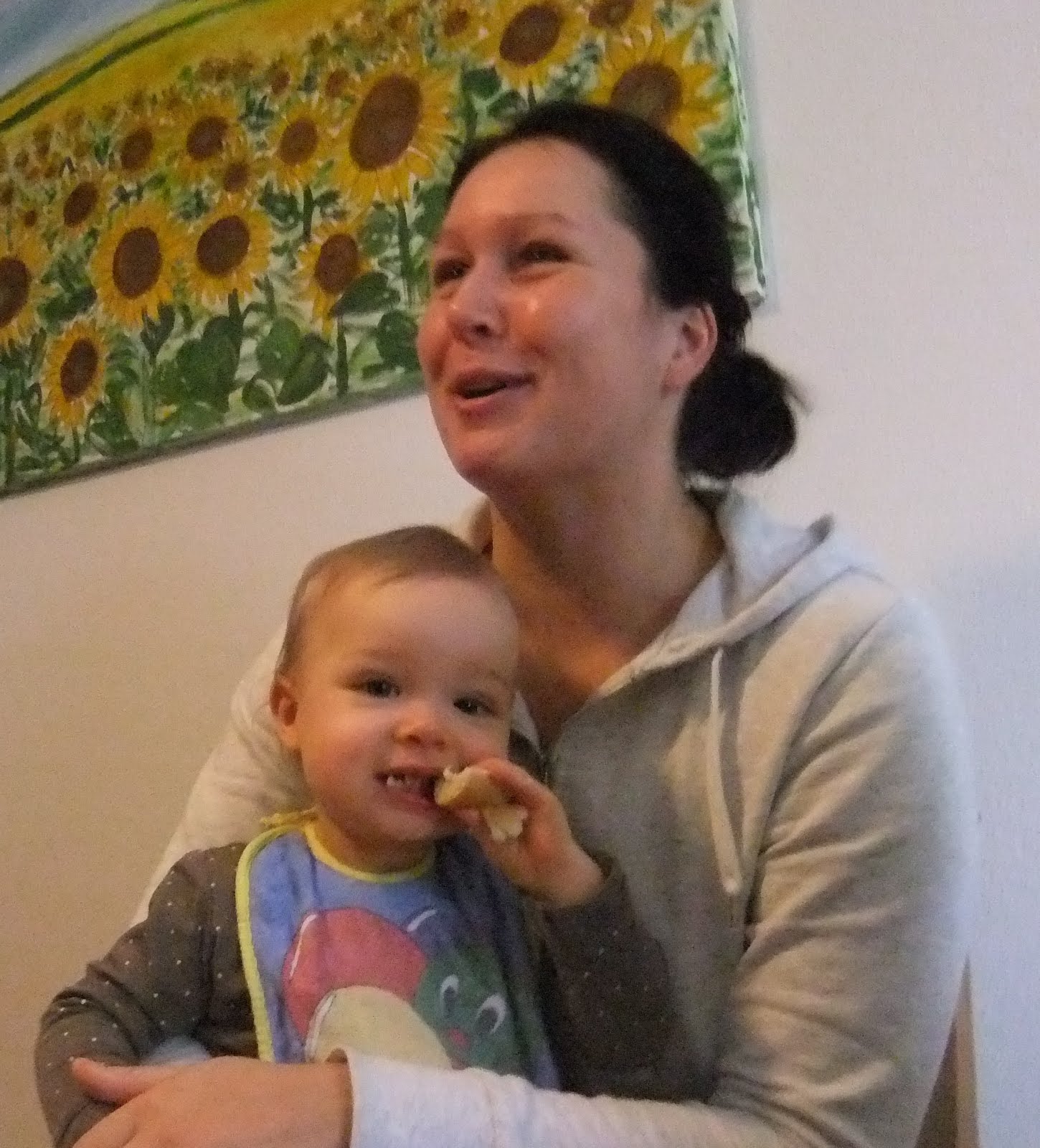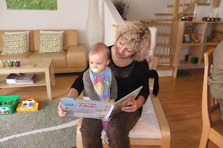 Am trecut si pe la nepotica Emma, sa-i ducem cadoul pentru Craciun :) Emma are deja un an si o luna, cinci dinti, îi place sa "citeasca" si nu are chef înca sa mearga.