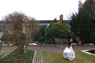 ȘtergereNu ai mai vazut pomisori impodobiti? eu am afisat in fiecare an, aici la mine pe blog, fotografii din ajun de Paste si am explicat multe din obiceiurile catolicilor. Eu am adoptat multe, deoarece sotul meu este catolic si vecinii mei sunt toti nemti (catolici în majoritate, sau evanghelici) si obiceiul acesta il gasesc nespus de frumos. Paralel cu pregatirea casei pentru Sarbatoarea Luminii - curatenia generala si decorarea cu ornamente de Paste, se impodobeste si curtea. Iepursi, mieluti, pui, cuiburi cu oua, se gasesc pe toate scarile la intrare, iar in curte, cel putin un copacel este impodobit cu oua colorate. Este intr-adevar o atmosfera sarbatoreasca, se vede bucuria celor care serbeaza Pastele.