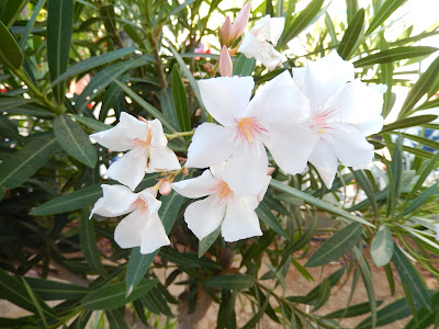 Fiind pentru prima data în vacanta pe Creta, am luat în valiza câtva jachete si pulovere "pentru seri racoroase" :)) Nu am stiut ca aici, noaptea, temperatura aerului nu scade sub 26°C si deasemenea m-am mirat sa aud ca ultima ploaie a fost cândva la începutul lui iunie, iar urmatoarea este asteptata la mijlocul lui octombrie! Si totusi, aici oleandrii cresc salbatic si au flori triple si parfumate, în culori de rubiniu, roz si alb, palmierii si ficusii uriasi se întâlnesc la fiecare pas, la fel ca hibiscusii cu flori rosii, galbene sau albe. Dealurile sunt acoperite de maslini (ni s-a spus ca pe insula exista 5 milioane de maslini! În plus, trebuie subliniat faptul ca uleiul obtinut din maslinele cretane este cel mai bun, aciditatea scazuta aducându-l pe primul loc, înaintea uleiurilor italiene, spaniole sau turcesti.), vita-de-vie, potocali si lamâi.
