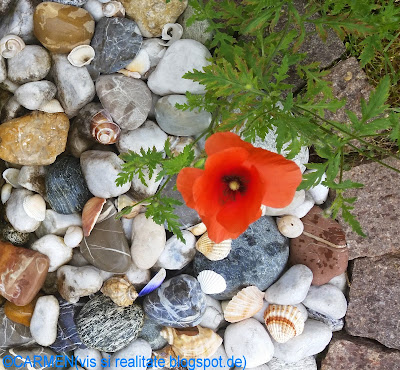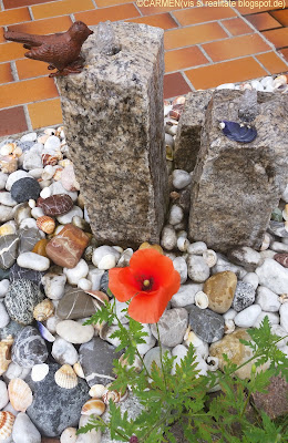 Adus pe-o aripa de fluture sau de o pala de vânt, macul a rasarit între scoici si melci si pietre, în curtea mea.