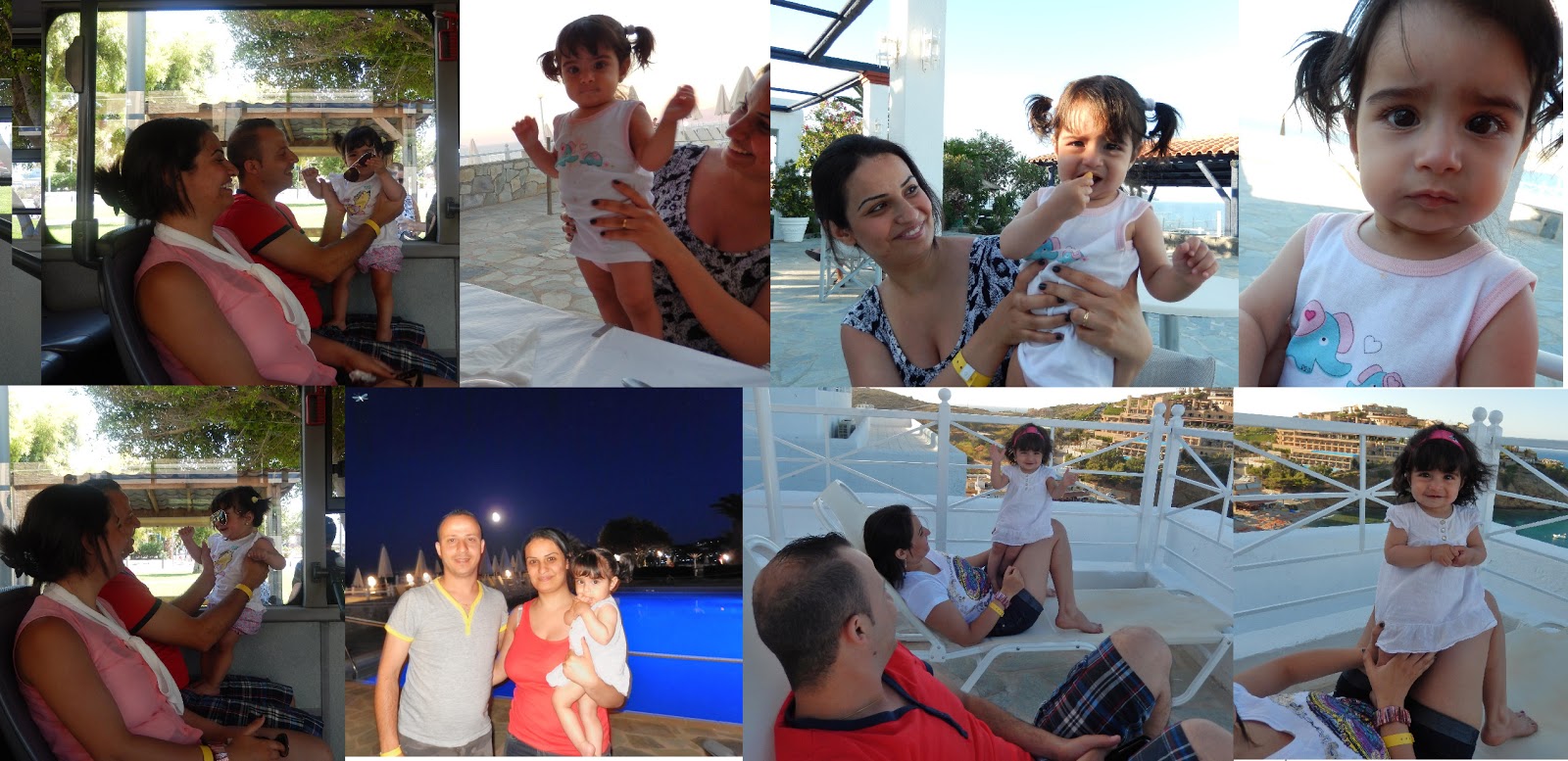 Ultima lor saptamâna de concediu a corespuns cu ultimele noastre zile de vacanta si asa s-a facut ca am petrecut câteva seri împreuna. Dupa cina, fiecare program de seara a debutat cu discoteca celor mici iar Clarisa a tinut mortis sa dansam împreuna "toate fetele", adica eu si Marina - mamica ei. "Barbatii", adica Pedro, Helmut si taticul ei, trebuiau sa tina o masa rezervata pentru mai târziu - când luam toti loc pe terasa si serveam înghetata si citronada, respectiv Uzo (bautura-alcoolica traditional greceasca). Pe la ora 22, Clarisa ocupa locul din fata al caruciorului dublu, poreclit "Ferrari", chiar daca nu era de culoare rosie :)) si visa alaturi de fratiorul ei, fara sa fie câtusi de putin deranjati de galagia din localul în aer liber.