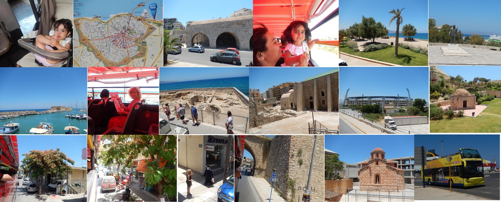 Dupa ce am facut o pauza de un frappe, ne-am urcat într-un citybus cu etaj si fara geamuri si am facut turul capitalei Heraklion, ascultând muzica traditionala cretana si explicatiile înregistrate pe banda si transmise în casti, în legatura cu monumentele din zona în care ne aflam.