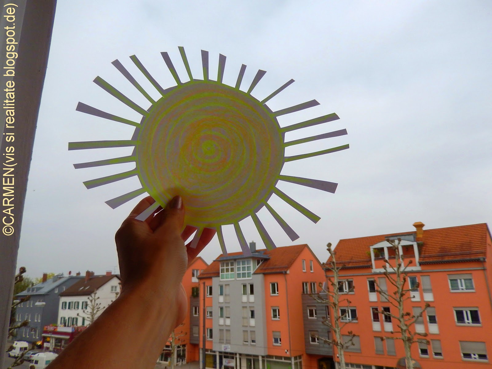 În anumite zile, rasaritul de soare apare ca vazut printr-un ciob de sticla rosie si groasa - discul astrului de foc apare diform, difuz si deosebit de departe. Sunt însa zile - ca spre exemplu astazi, când soarele nu se vede deloc... Asa ca eu mi-am desenat unul ☺ Nu bate vântul, nu este niciun nor pe cer... Am senzatia ca traim într-un studio de film în care decorul cerului nu este important deloc! Sau, parca ne-am învârti într-o sera uriasa, cu geamurile murdare.