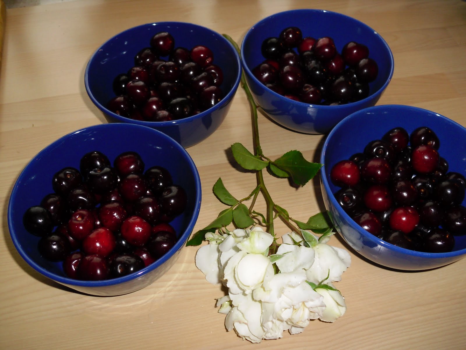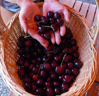 Ciresele noastre sunt mai mult pe jos decât în pom! Asa ca am cumparat un kilogram, dar... abia ne-au ajuns pe o masea! Si nici prea gustoase nu au fost. Însa...au costat 8€.