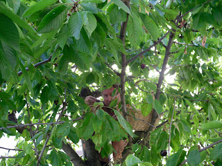 Anul acesta a fost un an rau pentru ciresul nostru. Exact pe când era plin de flori, a venit frigul si a plouat fara pauza, timp de doua luni. Gingasele flori albe au fost lovite de grindina si perioada a fost pentru albinute total neprielnica! Deci... asa cum ne-am asteptat, recolta a fost jalnica! Nu am putut sa mai fim darnici cu vecinii si colegii de serviciu. A ajuns doar pentru câte-o burta plina, în familie :)