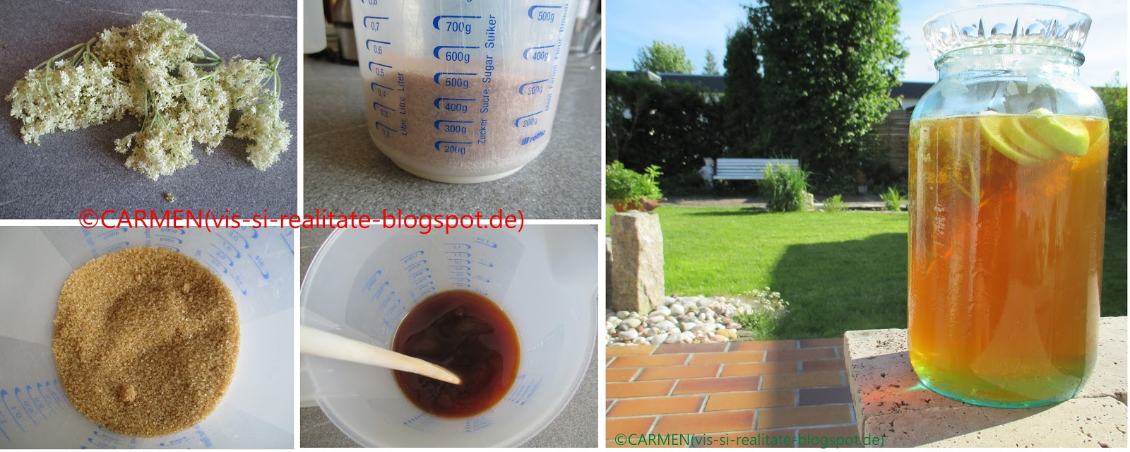 Am dizolvat în apa calduta, ceva mai putin de 500 grame zahar brun. Am turnat peste florile de soc, am feliat o lamâi si am pus-o în borcan. Am umplut borcanul cu apa rece si am adaugat zeama de la înca o lamâie. Am ales câteva frunze proaspete de menta si le-am pus în borcan. Am amestecat, am acoperit borcanul cu o farfurie de sticla si am asezat recipientul la soare, in curte. De câte ori trec pe lânga borcan, amestec în el cu o lingura de lemn. Daca se adauga drojdiuta, fermentarea va avea loc mai rapid, însa asa cum am procedat eu, socata are nevoie de trei zile pâna când v-a fi buna de strecurat si pus la sticle în frigider, gata de servit :)