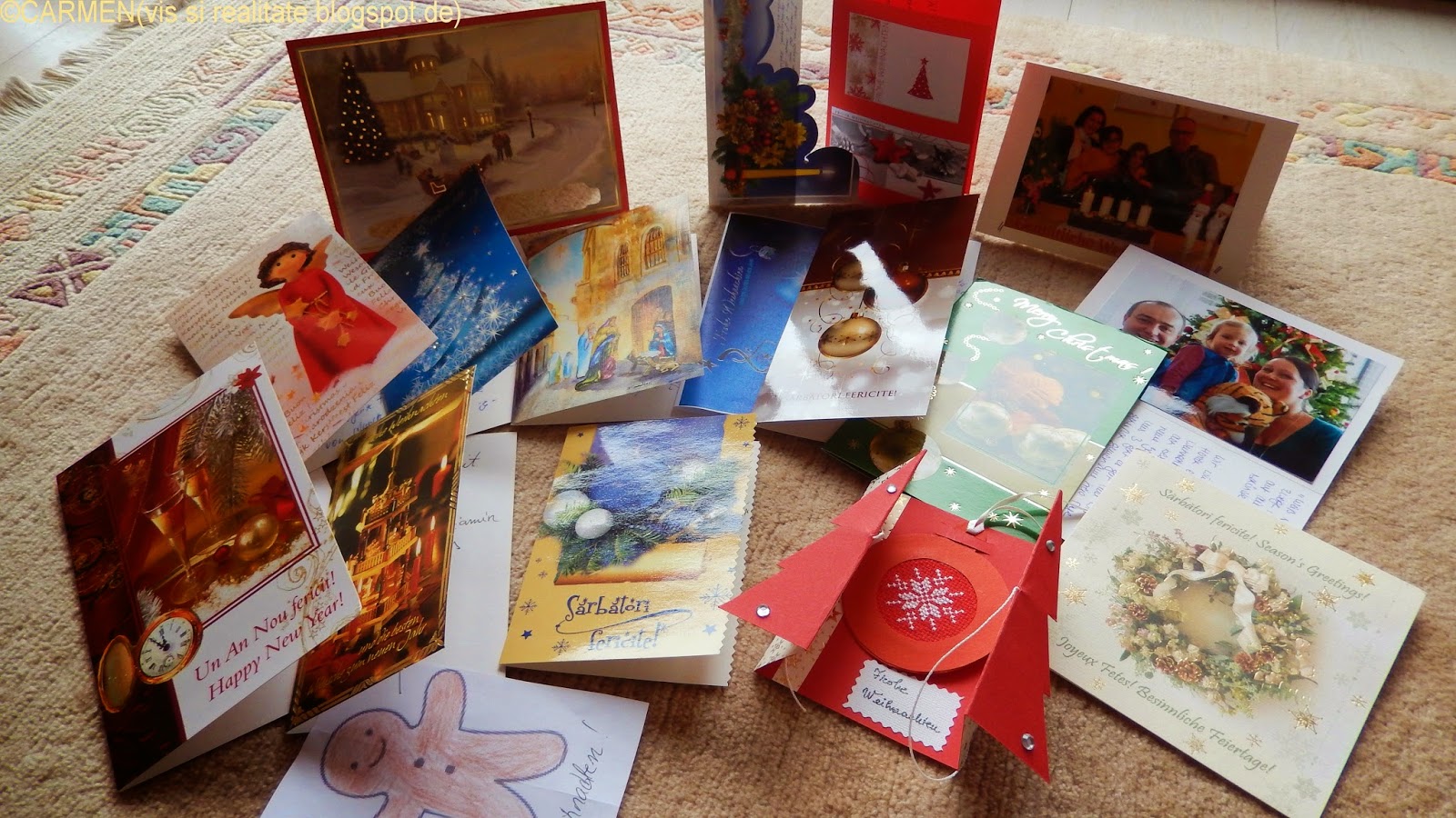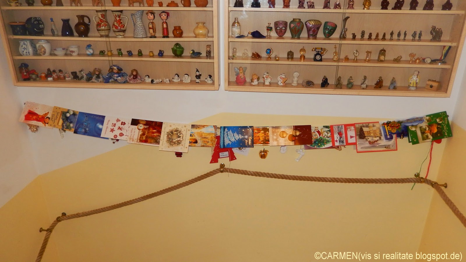 Am hotarât sa mai pastrez înca felicitarile pe snurul din casa scarilor. De câte ori trec pe lânga ele, simt gândurile celor dragi aproape si ma bucur... Le sunt recunoscatoare si apreciez faptul ca mi-au dedicat doar mie câteva minute, scriind cu propria mâna ceea ce le-a dictat sufletul.