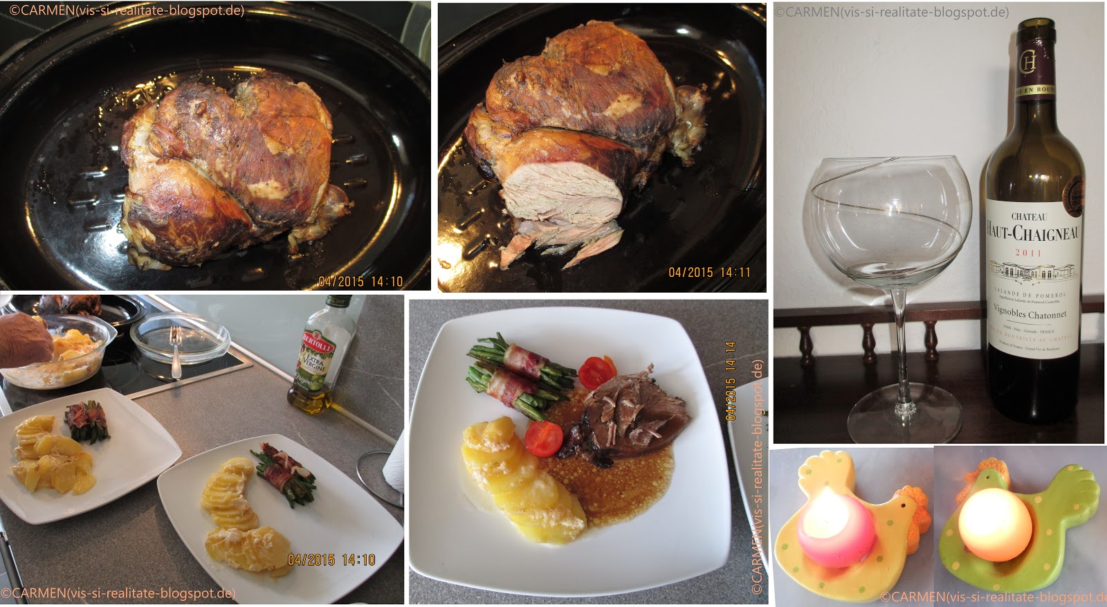 Pentru ca vinete stie orice român sa pregateasca, nu am sa scriu cum le-am preparat. Deasemenea despre pregatirea ratei si a galustelor de cartofi nu voi mai scrie, deoarece am mai facut-o aici pe blog, la fel ca si despre perele în sos de vin. Voi scrie însa câteva cuvinte despre bauturile servite.