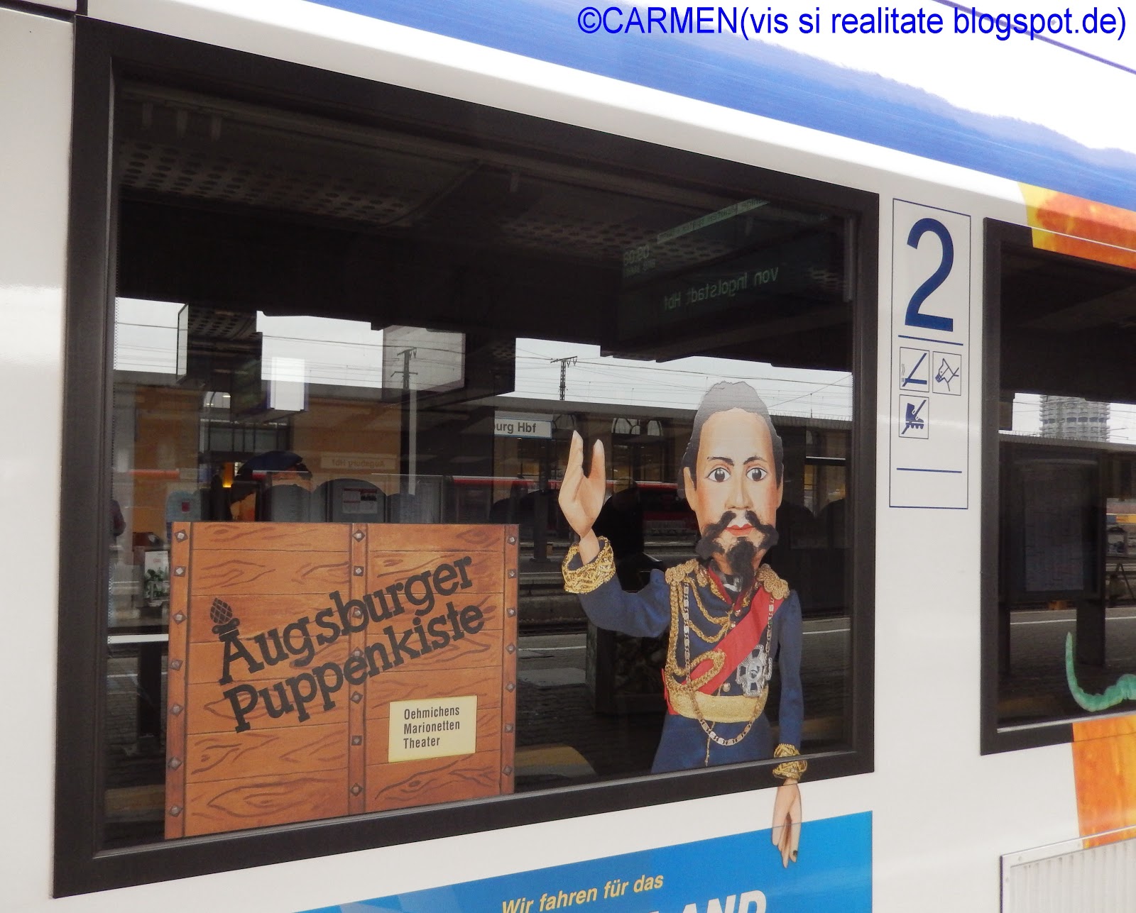 Matusa mea a pornit cu trenul spre Augsburg la ora opt si un sfert. A cumparat bilet "Bayern-Ticket" pentru doua persoane (Bayern Ticket este o actiune permanenta a Deutschen Bahn AG; biletul dus-întors în aceeasi zi, costa 25 Euro pentru o persoana si pentru fiecare calator suplimentar, înca 7 euro / pot calatori pâna la 5 persoane).