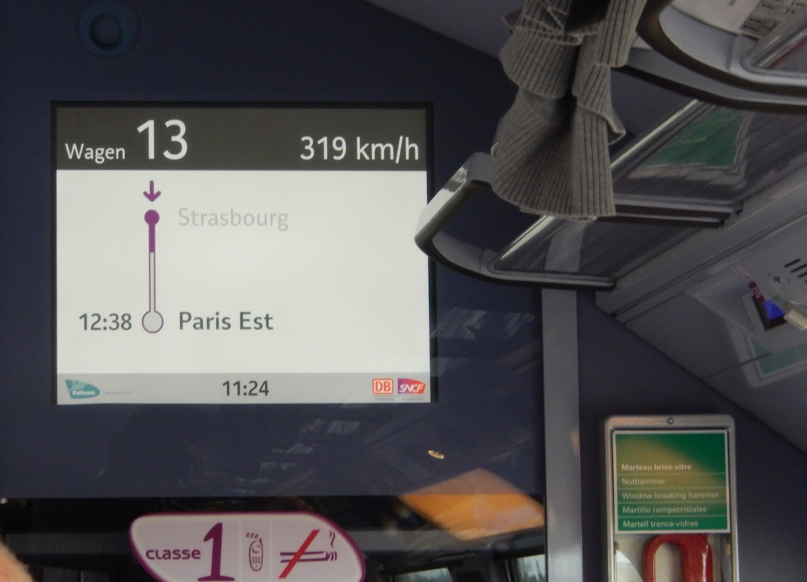 De când s-a introdus legatura de tren direct din orasul nostru si pâna în Paris, am mai calatorit, dar doar la clasa a doua - si chiar daca ma repet, trebuie sa spun ca linia este deosebit de confortabila! În plus si foarte rapida - în cinci ore si jumatate esti transportat din centrul orasului Augsburg, în centrul capitalei Frantei!