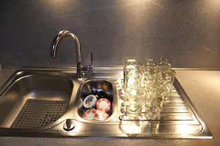 Meniul de astazi a fost rata umpluta cu prune, stafide si portocale, coapta la cuptor si unsa cu miere, pâna când exteriorul ratei a devinit crocant. Alaturi, sos de vin rosu si traditionala garnitura - varza rosie calita si galuste de cartofi umplute cu prune uscate. Ca aperitiv, am preparat un Campari cu suc de portocale proaspat stoarse si bineînteles la masa, câte un pahar cu vin bun de Bordeaux (un Château Le Chêne Haut-Médoc, 2010). La desert, o cupa cu înghetata de mango si ciocolata.