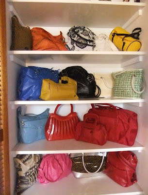 Posetele mele stau asezate în dulapul din hol, asa încât sa-mi fie la îndemâna dimineata, când doar cu cinci minute înainte de a porni spre serviciu stiu ce pantofi voi încălta. Nu sunt toate din piele veritabilă, dar colectia mea cuprinde posete în multe culori, mărimi si forme :) Probabil veti spune "fiecare om cu păsărica lui, numai eu cu stolul" ;)) de aceea, nici nu îndraznesc sa vă arat dulapurile cu pantofi!