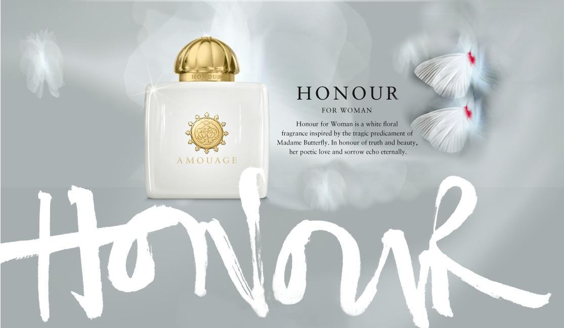 Aceasta stare de spirit indusa de parfum s-a amplificat pe masura ce spectacolul s-a desfasurat si de nenumarate ori am închis ochii si mi-am mirosit mâna. Fermecatoarea muzica este întradevar transpusa acor-cu-acord în acest parfum, numit simplu Honour. O afinitate muzicala speciala si un plus de emoţii, de melancolie confera purtatorului, acest parfum eletist. Chiar si acasa, ajunsa în pat, parfumul mai persista si ultimul gând înainte de a adormi a fost la Cio-Cio-San. De atunci mi-e gândul la acest parfum romantic, în care creatoarele Alexandra Carlin si Violaine Collas au amestecat "în joaca" vise cu esente fine si rare, volatilităţi cu emoţii, muzica, destine cu perfectiune si lux. "In honour of truth and beauty, her poetic and sorrow echo eternally" este mottoul brandul Amouage, pentru parfumul Honour, pentru onoarea doamnei Butterfly. De pe capacul ambalajului încearca parca sa se desprinda fluturasi gingasi si fragili...