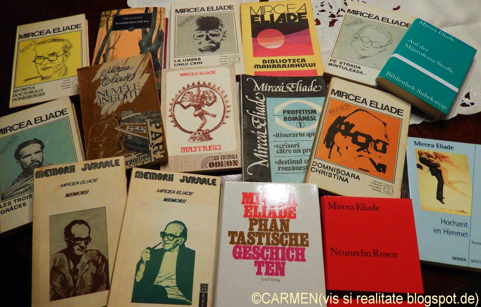 Mircea Eliade este scriitorul meu cel mai iubit. Daca nu ar fi existat Mircea Eliade, imaginatia mea ar fi fost mult mai simpla, visele mele ar fi fost poate doar în alb si negru, ochii mei nu ar fi fost antrenati sa caute frumosul în orice colt ar privi si sufletul mi-ar fi fost cu siguranta mai sarac.