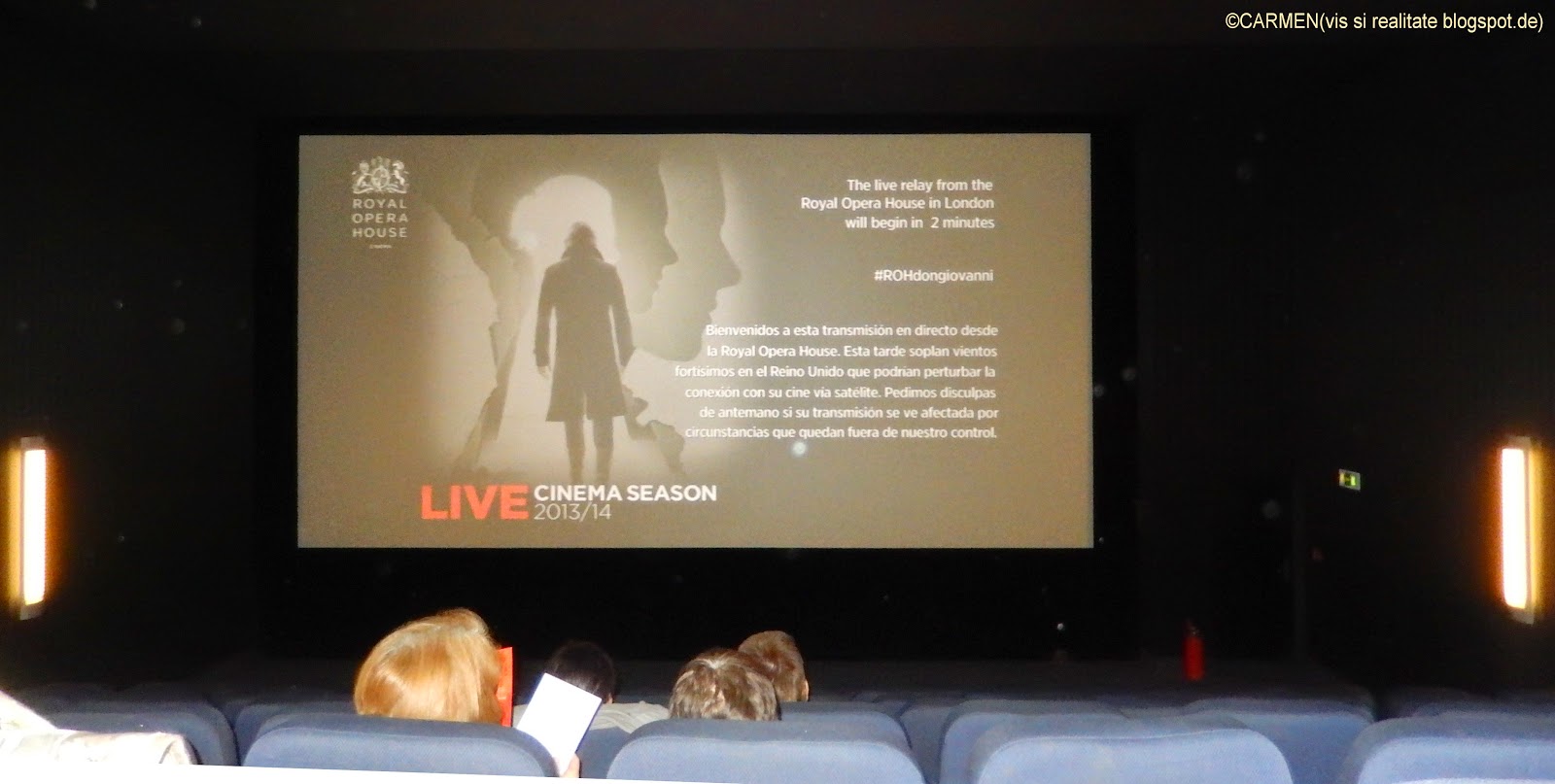 Ca de obicei, la intrarea în sala am fost întâmpinate cu câte un pahar de sekt sau sekt-orange, apoi am luat loc pe fotoliul rezervat, prin intermediul ecranului fiind martore la forfota din sala londoneza.