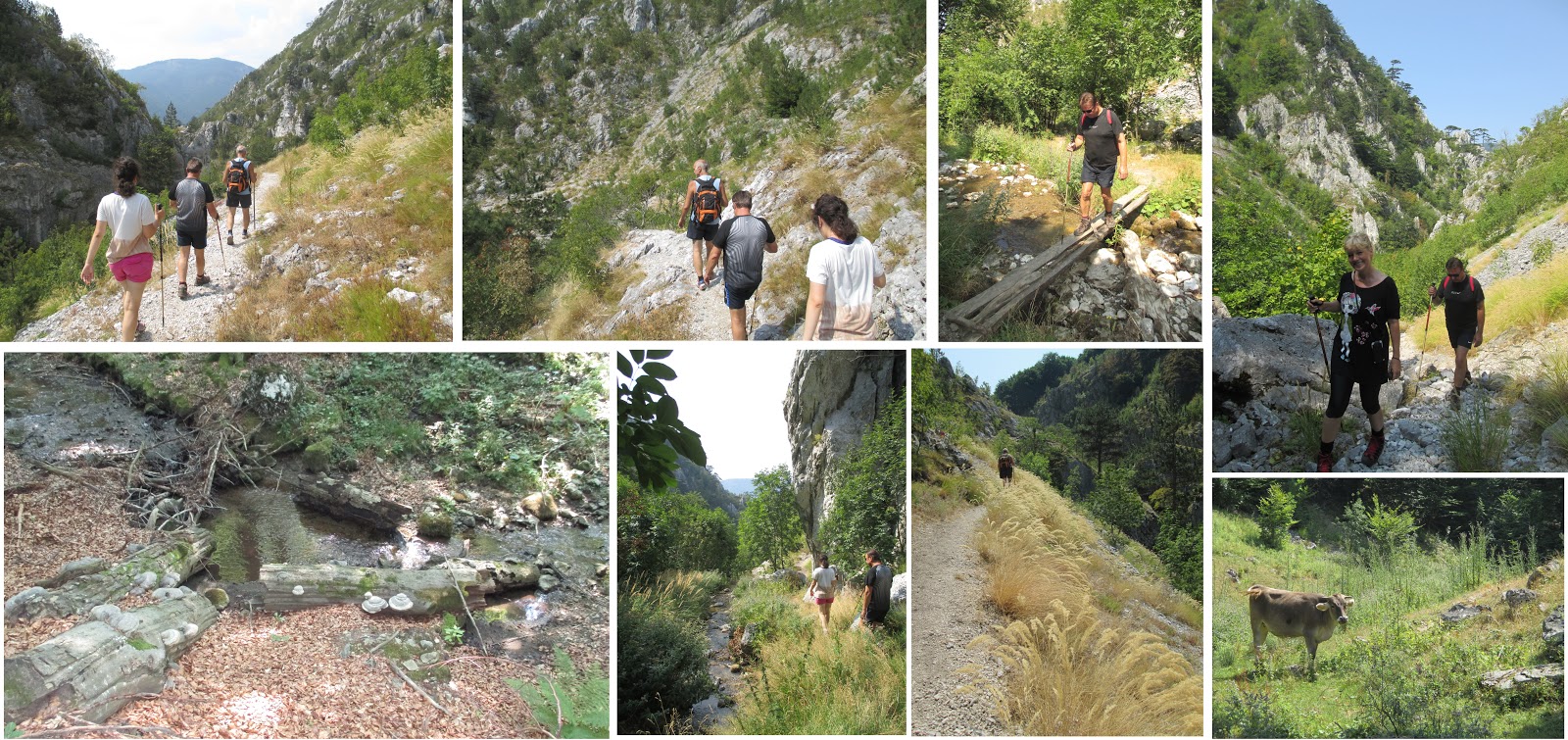 Peretii verticali ai cheilor sunt împodobiti din loc în loc cu pini negri sau tufisuri iar poteca îngusta merge în sus, de-a lungul vaii. Alina ne-a spus ca acest drum era batut odinioara de granicerii Imperiului Austro-Ungar si al Tarii Românesti.