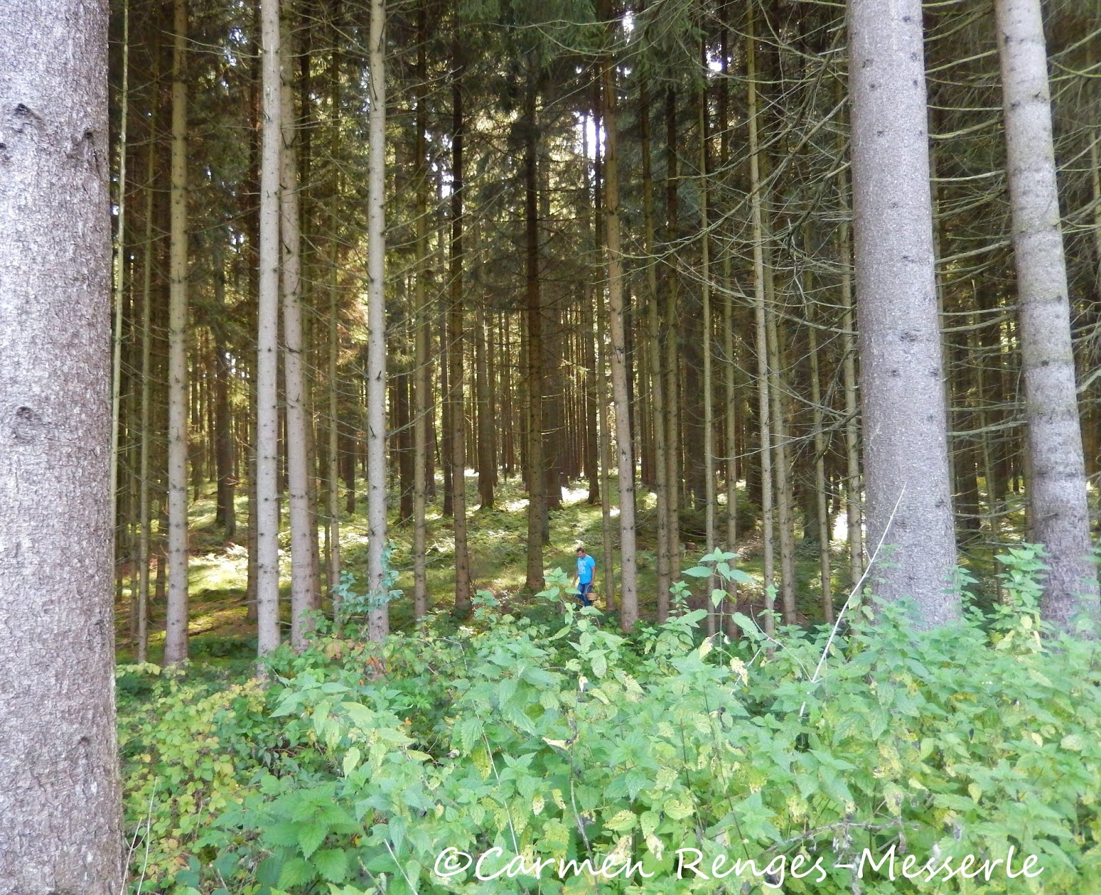 Sâmbata dimineata, dupa ce ne-am uitat la desene animate pe Kika, am constatat cu bucurie ca cerul este albastru si soarele si-a facut din nou aparitia. Am facut rapid un ceai de macese, i-am îmbunatatit calitatile cu miere si lamânie si l-am turnat în termos. Am pus câtiva biscuiti înt-o cutie si am luat rucksacul de picnic. În câteva minute ne-am echipat pentru o scurta excursie. Am fost în padurea din comuna Scheuring, la 20 km de casa si am ajuns pâna la ruinele burgului Haltenberg.