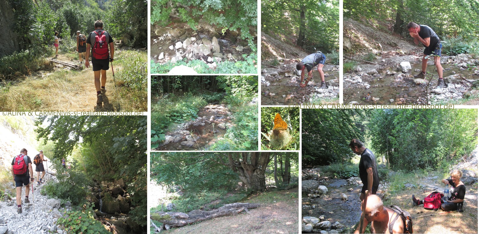 Mai departe, o bucata de drum am mers pe firul Ţăsnei, trecând pârâul de câteva ori de pe o parte pe cealalta, asa cum ne-a condus poteca. Căldura dogoritoare parca se mai domolise si noi capatasem pasul mai vioi.