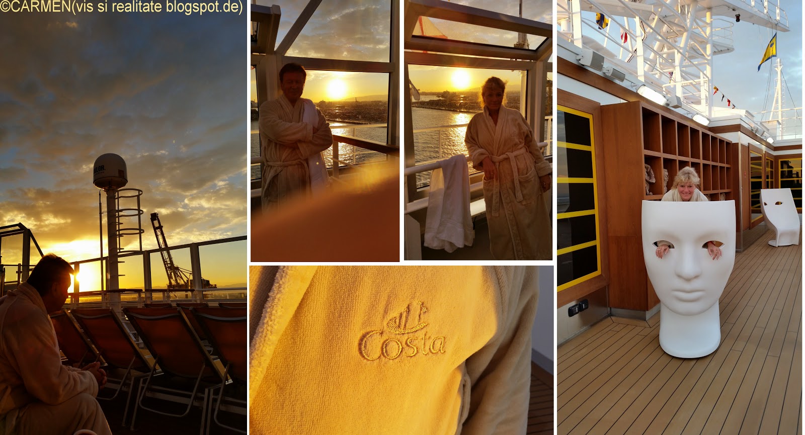 Dupa superba plimbare prin Barcelona, ne-am întors pe vapor, am servit un prânz frugal si ne-am grabit spre complexul SPA. Am dorit sa intram macar o data la sauna si jacuzzi înainte de masajele aromatice pentru care am avut facute programari înca din prima zi. Helmut a savurat un masaj "Asian stone" si eu un masaj "Bamboo". Urmatoarea zi am inversat cabinetele... Au fost tratamente uluitor de relaxante, ne-au creat o stare încântătoare, de basm! Dupa un astfel de masaj te simti purificat, corpul îti este atât de usor, atât de fin, îti simti mintea eliberata de tot ce este inutil sau dăunător!
