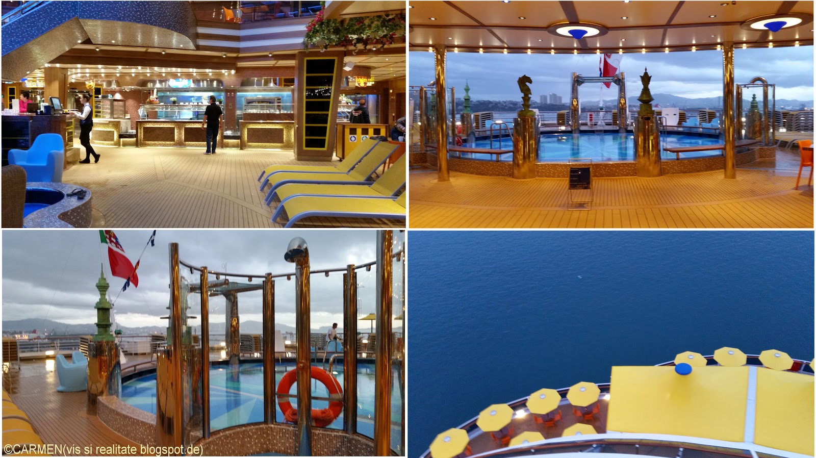 Energizati, stimulati, relaxati, eliberati de orice urma de stress, am fost apti pentru a ne continua ziua printr-o plimbare pe vapor. "Orasul plutitor" avea înca multe de exporat! :) Am început sa cercetam etajul cinci, dintr-un capat în celalalt... Nu cred însa ca am intrat peste tot, este imposibi, vaporul e enorm! Ai nevoie de harta, altfel risti sa te ratacesti ☺