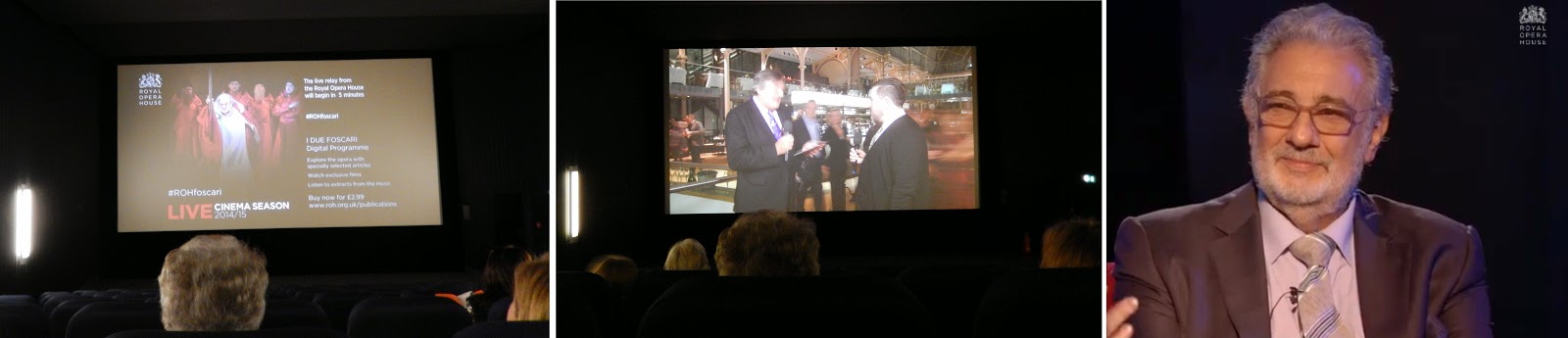 În timpul pauzei, am urmarit un scurt interviu cu Plácido Domingo si tare m-am minunat sa vad cât a îmbatrânit. Se întâmpla ca imaginea marilor vedete sa ne impresioneze în vremea tineretii si sa o pastram în memorie fara sa realizam ca timpul trece peste toti, în acelasi ritm. Toti îmbatrânim, însa realizam doar atunci când întâlnim persoane pe care le vedem rar. Plácido Domingo a împlinit 72 de ani si a îmbatrânit frumos. Puterea vocii lui este impresionanta, registrul bariton nou abordat este dominat cu talent de aceasta voce valoroasa, cu timbru cald, impunator. În "Cei doi Foscari", Plácido Domingo interpreteaza rolul Dogelui Venetiei, personaj pe care l-a jucat de nenumarate ori, dar niciodata nu a fost atât de aproape de vârsta personajului - declara zâmbind marele artist. Interviul cu Maestro Domingo a fost profund emoționant.