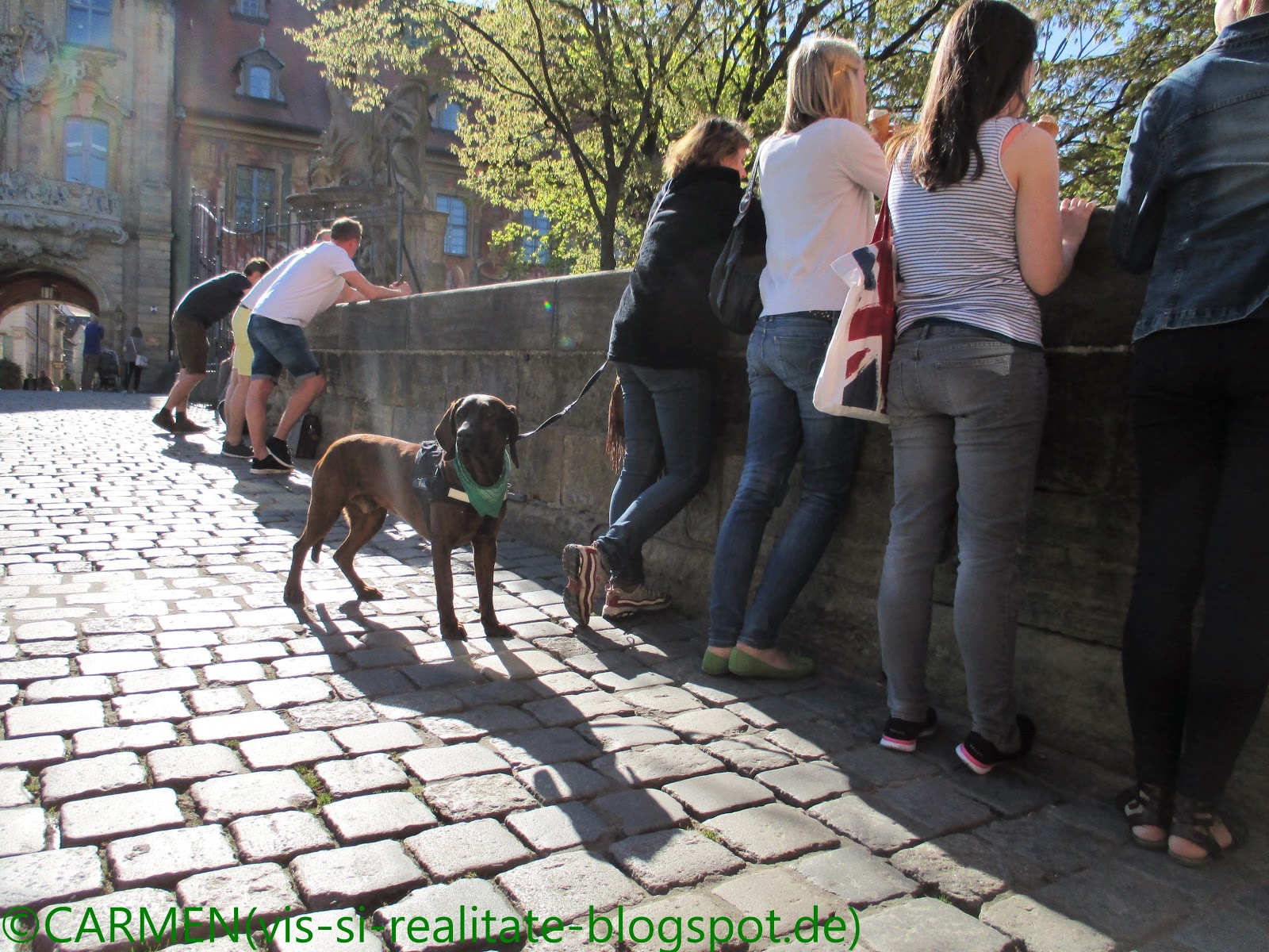 Pentru ca aici cateii nu au voie sa intre (nicaieri in Europa cateii si posesorii de catei nu sunt atât de respectati ca-n Toscana!) Helmut si Marius au ramas cu Leo si Molly, pe o banca în parc. Noi fetele am urcat cele 125+40 de scari pâna pe terasa superioara a monumentului si am admirat de sus minunatul peisaj.