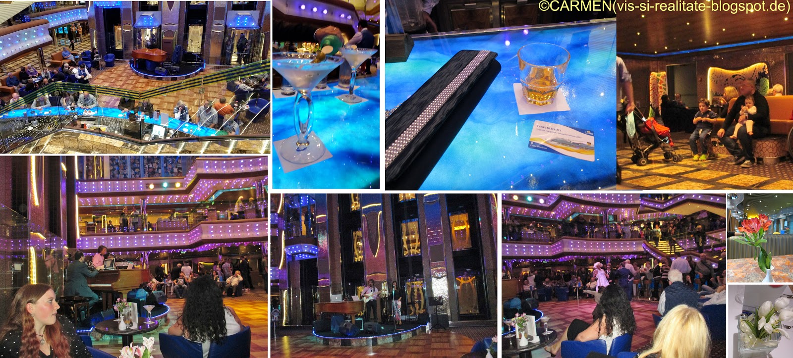Pe timpul mesei am baut vin alb sec, apoi ne-am mutat în bar unde am continuat cu un brandy si câte un cocktail, am ascultat muzica si ne-am distrat pentru utima seara la bordul acestui superb vas de croaziera.