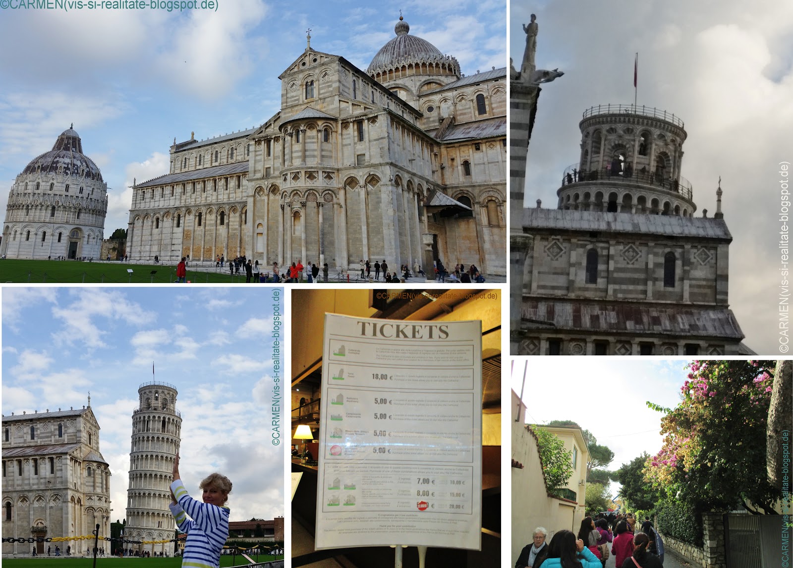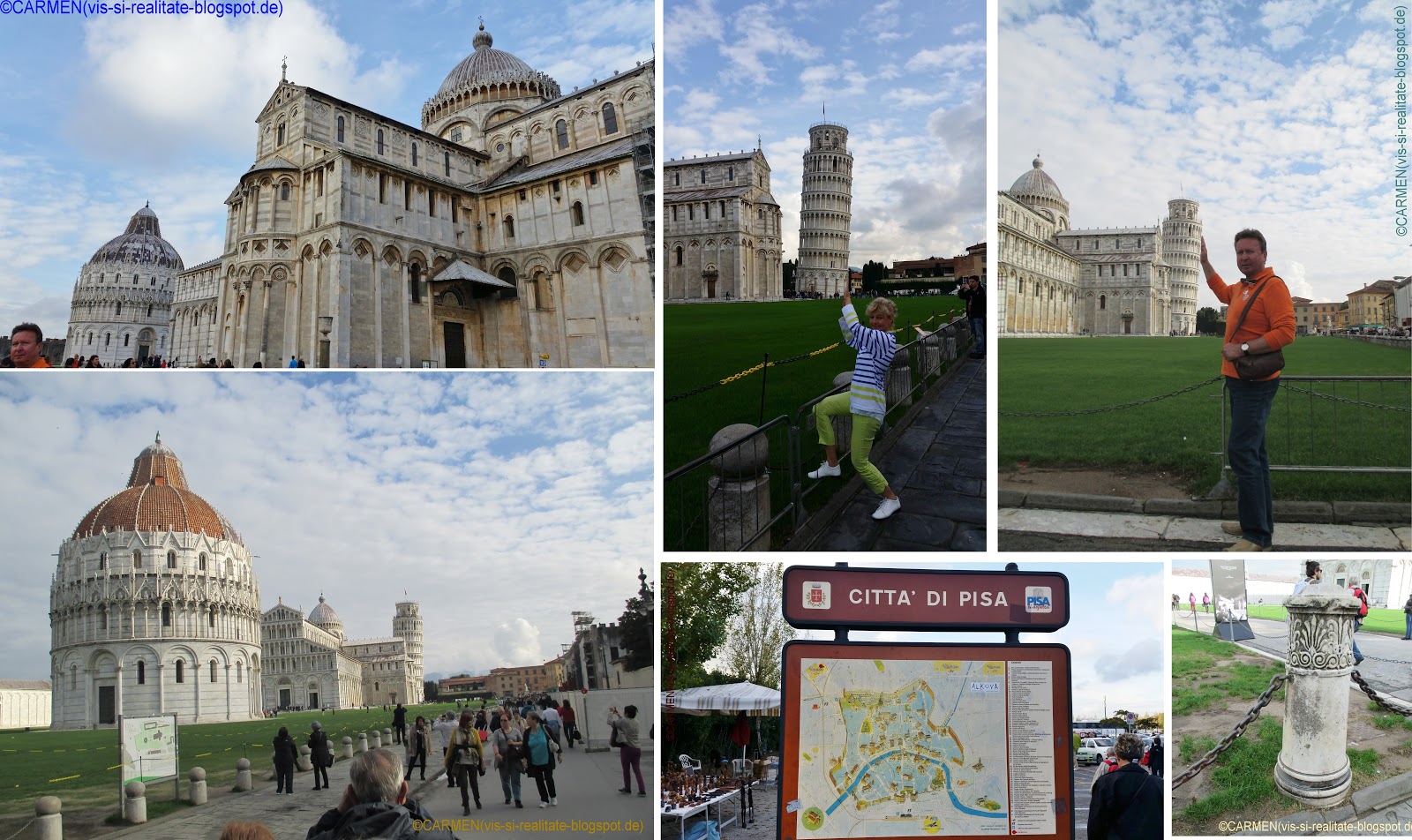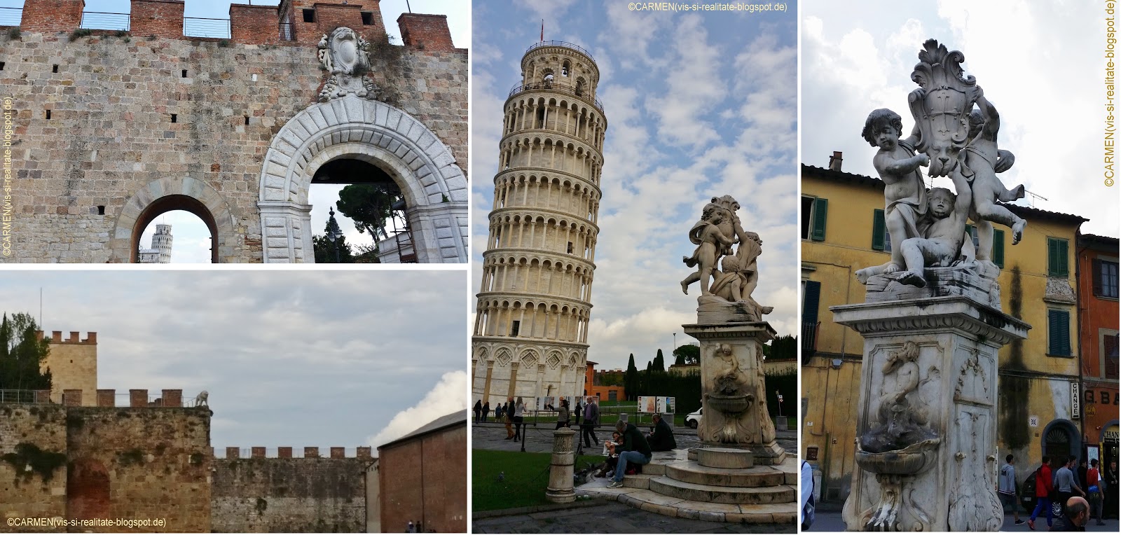 Cel mai renumit - Turnul înclinat (Torre Pendente), este considerat nu doar simbol al Pisei, ci reprezinta chiar emblema Italiei - la fel cum turnul Eiffel simbolizeaza Franta. Anual, milioane de turisti din toate colturile lumii vin sa vada turnul si Piata Miracolelor. Peste tot zaresti turisti sau grupuri de turisti, cautând unghiul ideal din care sa para ca sprijina turnul. Este o fotografie tipica ☺