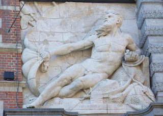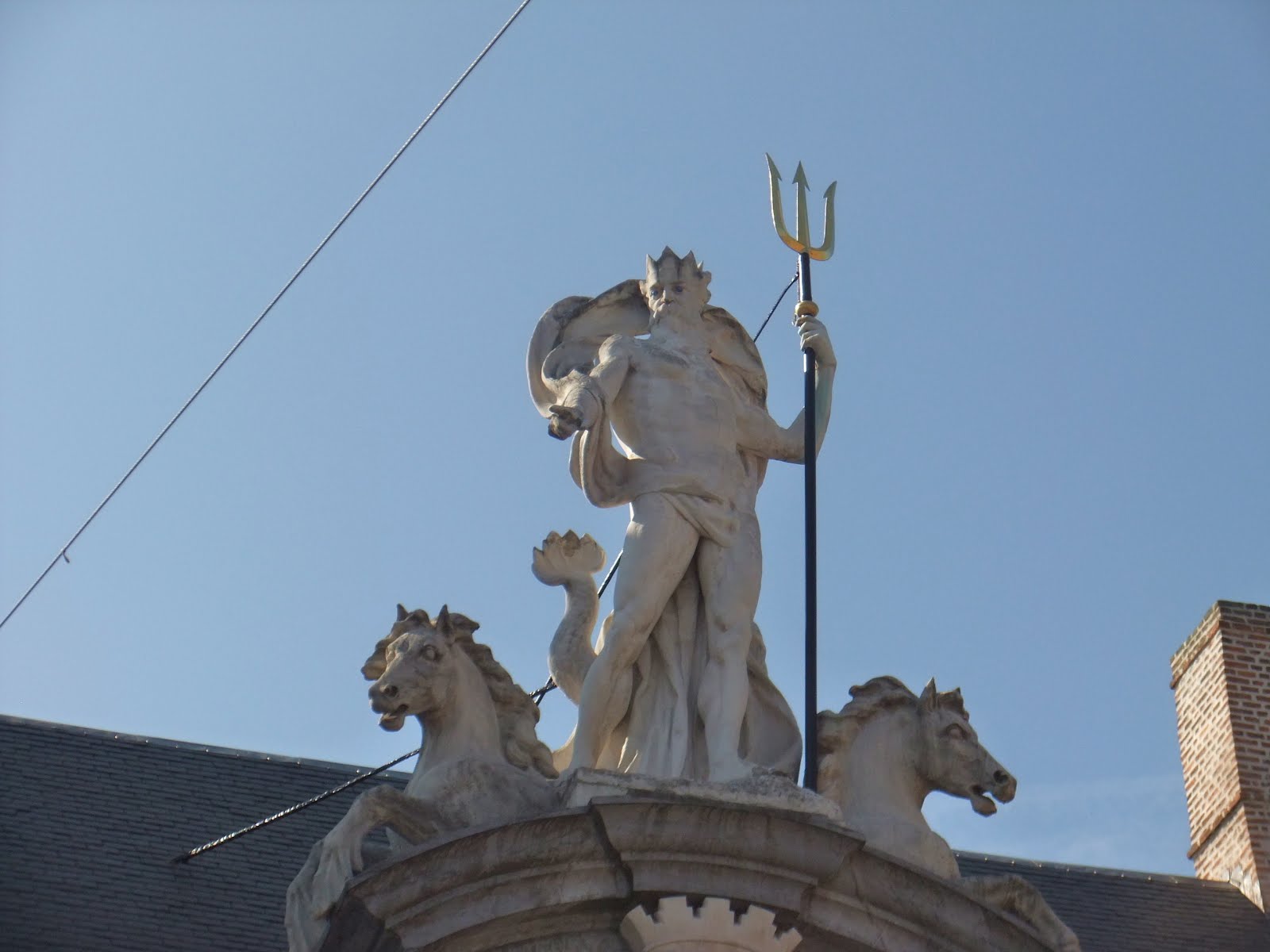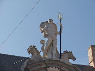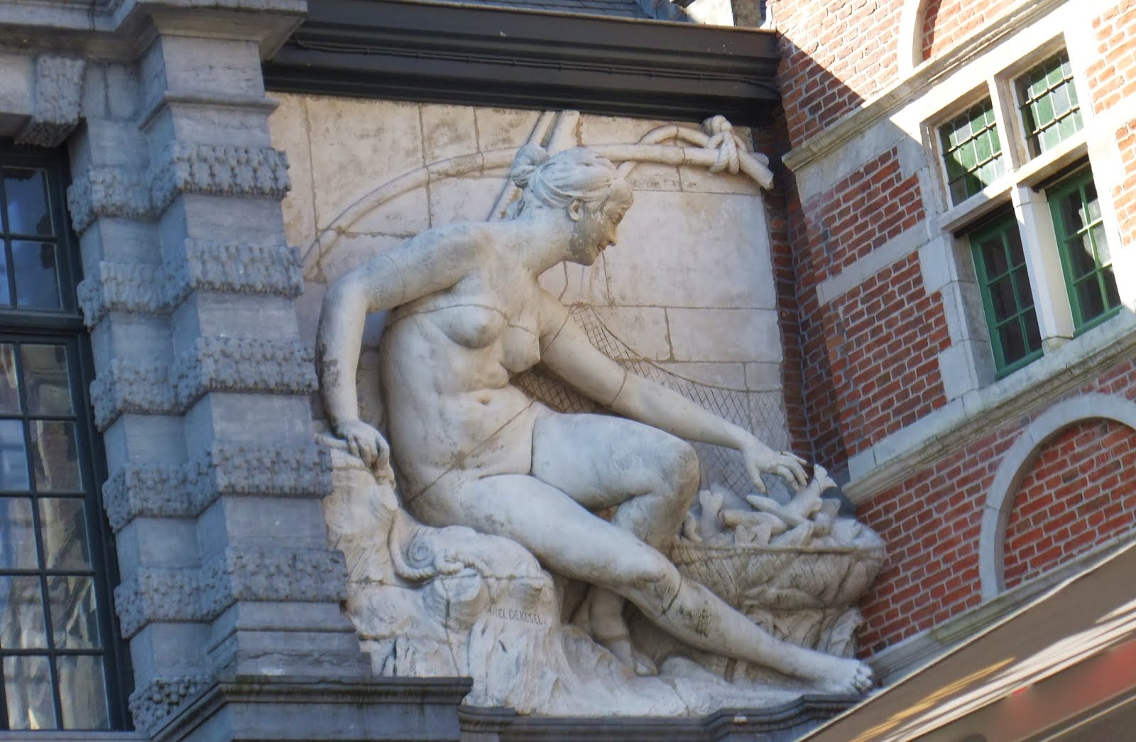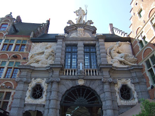 După un incendiu devastator în 1872, poarta principala - executata în anul 1689 - ultima ramasita baroc a pieței, este reprezentarea alegorica a celor doua ape ce traverseaza orasul Gent, în partea dreapta, râul Schelde - simbolizat de un barbat, în partea stânga râul Leie - simbolizat de o femeie si peste ei, veghind Neptun - zeul marii.