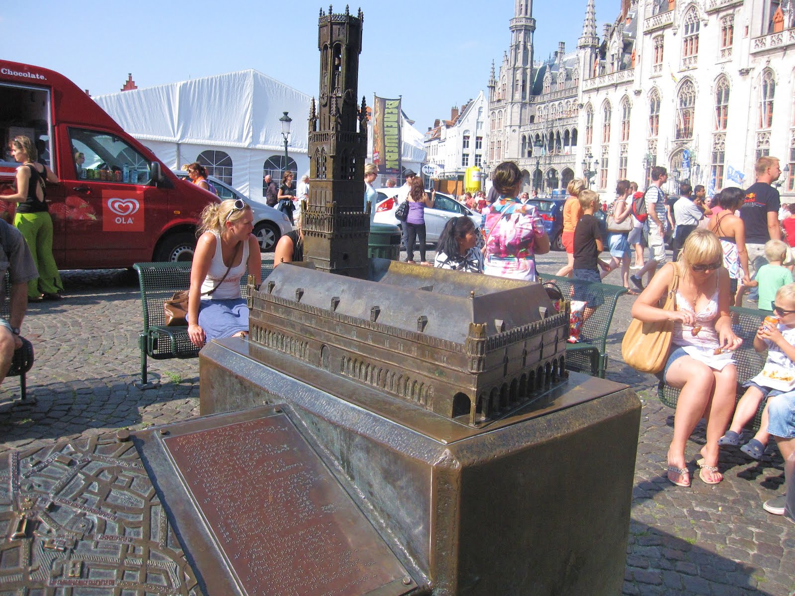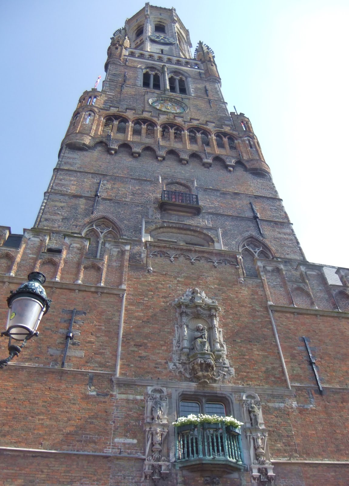 Ca toate orasele flamande, si Bruges are un turn Belfort, construit de breslele cu traditii seculare, ca simbol al libertatii si al puterii locuitorilor orașului medieval comparate cu cea a bisericii. Ridicat initial din lemn, turnul a ars în anul 1280 si cu el, întreaga arhiva. În anul 1296 a fost ridicat din nou si... a ars din nou! Al treilea turn, a fost construit din piatra în anul 1493, în stil gotic si a servit atât ca depozit al arhivei orașului si trezorerie, cât si ca turn de veghe. Ceasul si carilonul din vârful turnului sunt în perfecta functiune din secolul 17 si cele 47 clopote, cântaresc împreuna 27 tone! Turnul are o înaltime de 88 metri si urcând cele 366 de trepte, se poate ajunge la platforma superioara, deschisa pentru turisti.