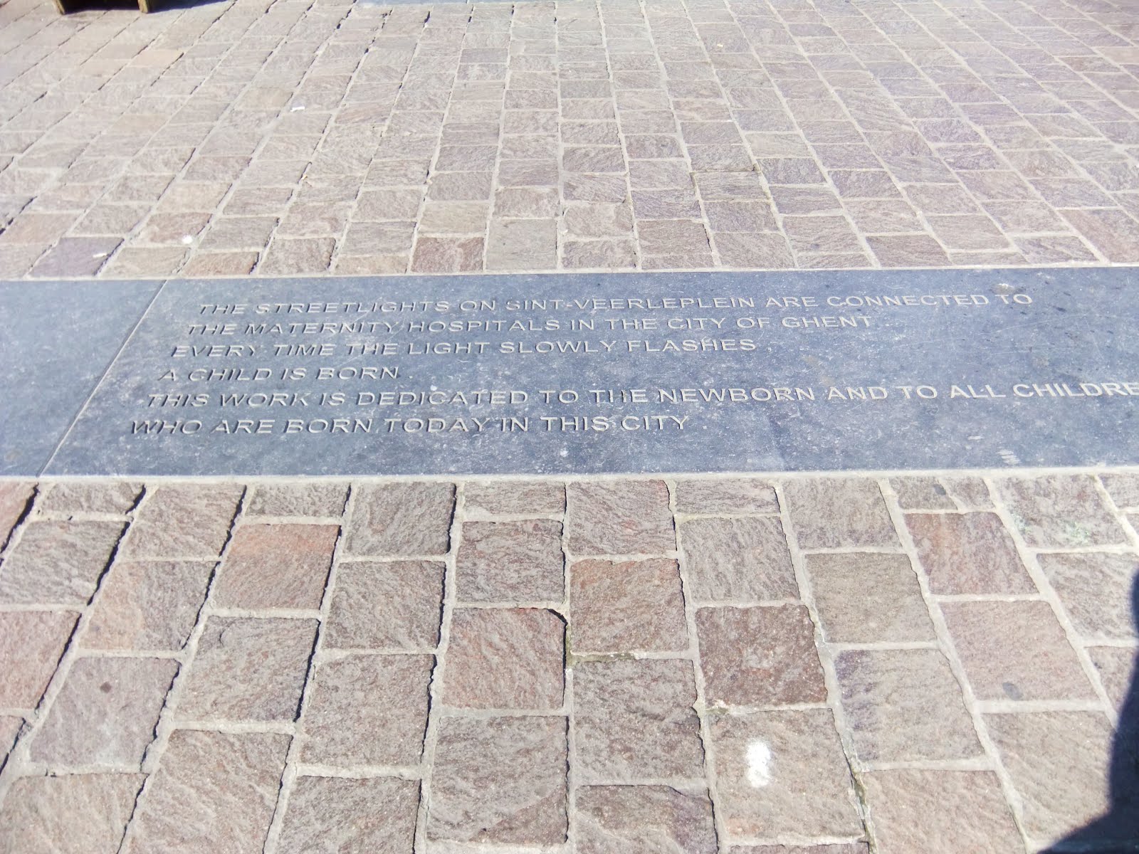 Daca nu ati stiut ca exista asa ceva, atunci aflati ca în Gent, sistemul electric de iluminat public din piata Sint-Veerleplein este conectat la maternitatea orasului. De câte ori se naste un copil, lumina pâlpâie vizibil aici în piata, pentru a marca bucuria ca numarul gentenilor s-a marit! :) Textul ce atesta acest fapt original si exceptional, este gravat într-o placa de granit direct pe caldarâmul din fata intrarii monumentale în Piata Pestelui.